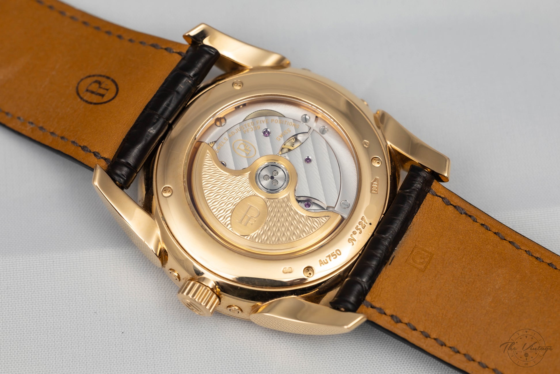 It is powered by the in-house automatic caliber PF339 with a 50-hour power reserve, visible through the sapphire caseback. As an annual calendar, it only needs adjusting once per year.