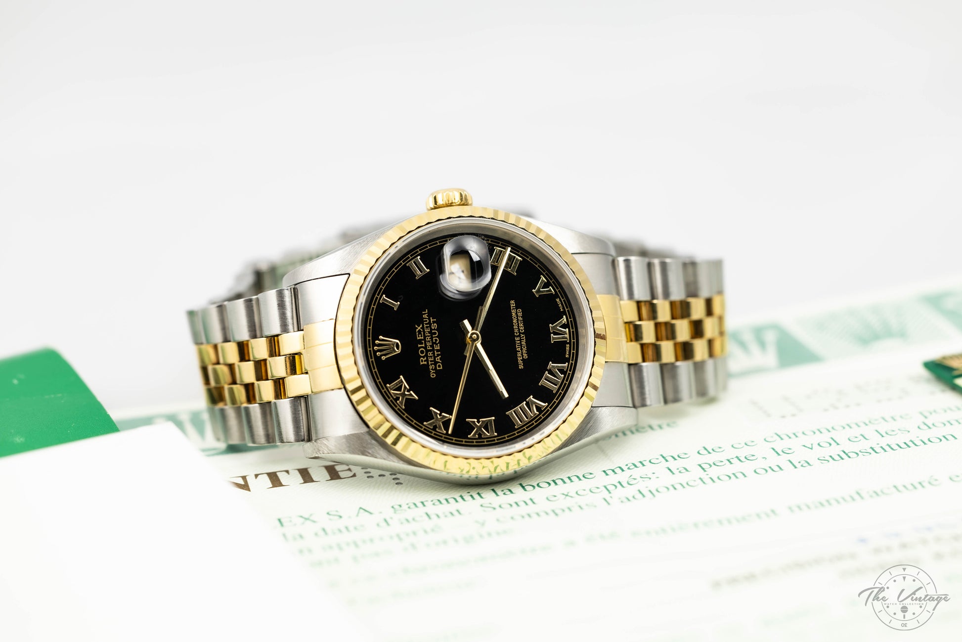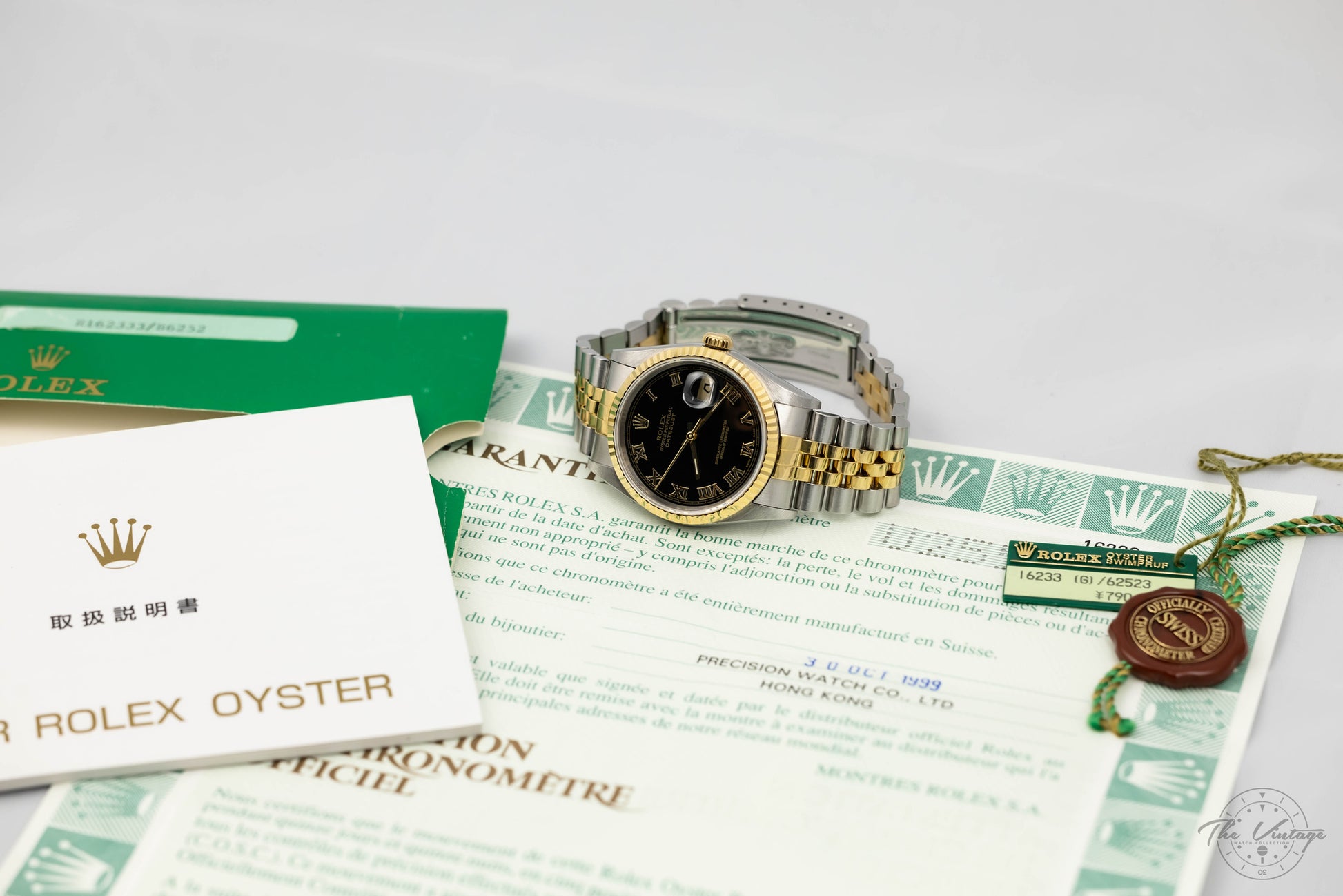 Rolex Datejust 16233 Black Roman Dial w/Papers