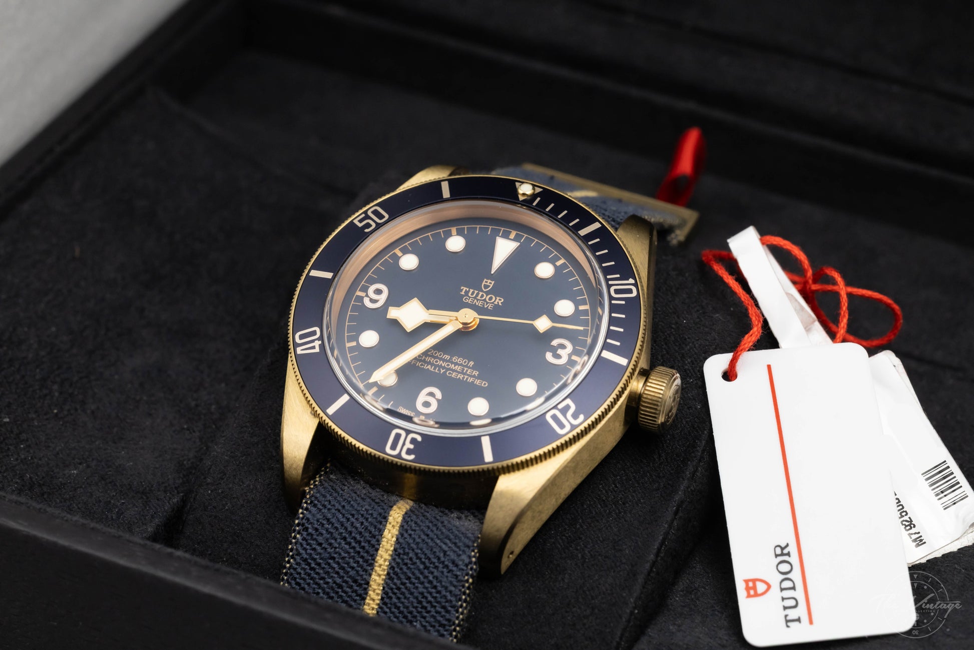 The Tudor Black Bay Bronze Bucherer Special Edition is a distinctive variant of Tudor’s Black Bay dive watch, defined by its blue aesthetic, bronze case and exclusive retailer ties. No doubt this watch has great collectible appeal with its limited production. The watch comes as a full set (boxes, cards leather strap, etc) in as new condition.